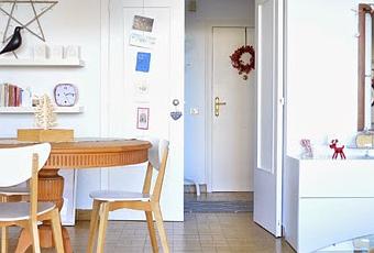 En la ventanita que da a la mini-cocina, siempre colgamos una guirnalda luminosa de acebo, y así al pasarnos los platos, que surja lo que tenga que surgir ;)