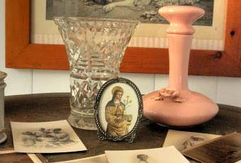 El portaretratos vintage ovalado con flores, es pieza de mesilla de noche, antes cada objeto tenia su lugar.
