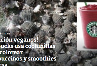 Hace unos dos años y media (marzo de 2012) se descubrió que la cadena Starbucks utilizaba, en algunos de sus productos, un colorante que procede de la masacre de millones de insectos llamados cochinillas.