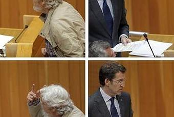 La imagen que ilustra nuestra entrada de hoy, recoge cuaro fotogramas de la agresión llevada a cabo por el Sr. Beiras al Presidente de la Xunta, durante un debate en el que salió a colación el asunto tenebroso de las relaciones mantenidas entre el político popular y un conocido narcotraficante. Cuando se dispararon las instantáneas en cuestión, el posteriormente implicado no era culpable ni imputado en nada, y el comercio con tabaco de contrabando en Galicia estaba a la orden del día. Las fechorías que cometiese después el traficante nada tienen que ver con el Sr. Núñez, que ya entonces, puso su puesto a disposición del partido. Diferente es el caso del Sr. Beiras, que golpeó la mesa, insultó, amenezó y abandonó la sala rezongando vocablos ininteligibles. Cuestra trabajo creer que esa es la forma del progresismo de mostrar su disconformidad, su desacuerdo. Las actitudes de líderes pseudoprogresistas se aproximadan cada vez más al totalitarismos, desde el momento en el que son ellos precisamente, quienes establecen las bases de lo políticamente correcto, generalmente con relación a un ideario tan utópico como trasnochado. A partir de ahí, el Sr. Beiras lucha por una Galicia aislada tanto en la lengua como en la geografía. La vestimenta y la ausencia absoluta de respeto por el mejor de los peores sistemas políticos que tenemos, esta democracia nuestra, es otro de los marchamos del galleguista, empecinado en pensar que lo fundamental son las diferencias propias de la idiosincrasia. Se equivoca: Siempre es mucho más lo que nos une que lo que nos separa.