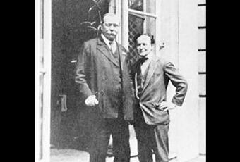 Sir Arthur Conan Doyle (izquierda) junto al mago Harry Houdini (derecha)