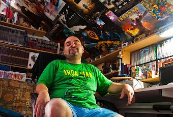 Hará aproximadamente unos 12 años que conocí a este muchacho en un centro cultural, un coleccionista compulsivo de cómics, libros, películas, juegos de tablero y demás merchandising relacionado. Como él mismo dice: "Mi colección está dividida en tres partes: audiovisuales (video juegos y pelis), lectura (libros y cómics) y ocio (juegos de miniaturas y tableros), aparte de todos los muñecos y figuras que tengo de personajes relacionados con estos temas".