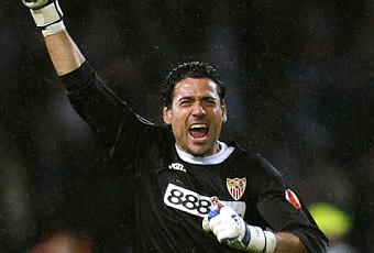 En su primer año en Sevilla la pantera de l'Alcudia conquistó la Copa de la UEFA, el primer trofeo Europeo en la historia de Nuestro Sevilla FC y al año siguiente se reeditó con un papel fundamental de Palop.