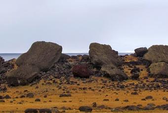 La mayoría de los moai fueron derribados con la cara hacia el suelo por la creencia que los ojos del moai era la fuente del poder del espíritu.