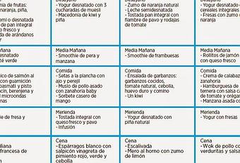 Tercera semana. Fase 2B: 3 productos al díaDesayuno, media mañana y merienda: producto de proteínasComida y cena: verduras permitidas + proteína animal