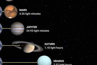 Para distancias en el sistema solar también podemos usar, aparte de la unidad astronómica, los segundos luz, minutos luz u horas luz, así por ejemplo la distancia de la Tierra al Sol es de 8.31 minutos luz, que es el tiempo que tarda la luz del Sol en llegar a la Tierra, como hemos visto en el primer gráfico del artículo. Por ejemplo la distancia a la Luna tan solo es de media 1.3 segundos luz pues su distancia a la Tierra es un poco mayor que 300.000 km que es la distancia que recorre la luz en un segundo.