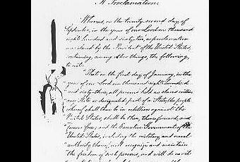 El 1 de enero de 1863, el presidente de Estados Unidos Abraham Lincoln proclamó la Emancipación de los esclavos estadounidenses, por la cual estos habían de ser liberados. Unos tres millones de esclavos encontraron la libertad gracias a este documento, considerado como uno de los más importantes de la historia de Estados Unidos.