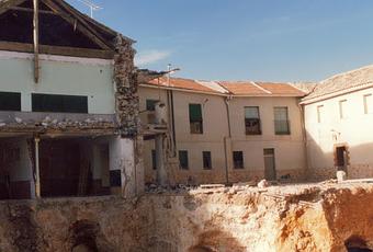 Aspecto del patio interior de la vieja Casa de la Encomienda, tras la demolición de la Tercia de Monreal para construir la residencia de ancianos.