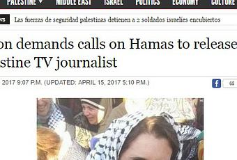 GAZA (Ma’an) – El sindicato de periodistas palestinos condenó el viernes al movimiento Hamas por la detención de una periodista palestina de Palestine TV, que ha permanecido bajo custodia en la Franja de Gaza durante dos días consecutivos.
