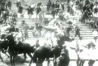 (Al filo de los días). La teníamos desde nuestra más tierna juventud como una de las escenas míticas del cine, ejemplo de la eficacia del séptimo arte para crear emociones verdaderas a partir de una “manipulación” creativa de las imágenes mediante el arte del montaje, el empleo de la elipsis, las concatenaciones. Cuántas veces no habremos mencionado —en textos, en charlas, en conversaciones…— la genialidad de estas imágenes y su valor casi fundacional para considerar al cine como un medio de denuncia imbatible, el gran aliado de la educación de la sensibilidad en el mundo moderno. Y otras virtudes. Lo que quizás no nos esperábamos es que la casi literal actualidad de esta secuencia de las escaleras de Odesa —sí, Odesa— volviera a poder herirnos con toda su crudeza y realismo. Qué terrible, también, la capacidad profética del arte. Y qué inmensa desgracia que no sirva de nada para evitar la obtusa, cruel, maldita reiteración de la madre de todos los errores.