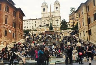 Después de pasar la mañana en la ciudad del Vaticano, decidimos ir hasta la “Plaza de España” y alrededores. Cogimos el metro y nos bajamos en “Spagna”. La plaza es muy fácil de identificar ya que a lo lejos se divisa perfectamente la gran cantidad de gente que allí se concentra. Nos habían comentado que tuviéramos cuidado con los carteristas ya que en esta zona abundan, pero la verdad es que en ningún momento notamos su presencia y no tuvimos ningún percance.