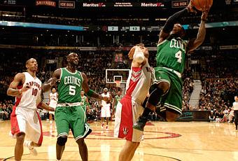 El encuentro comenzó con una cómoda posición para los Celtics, que veían en Nate Robinson la figura anotadora del equipo. Sus 16 puntos en el primer cuarto dan buena cuenta de ello. Sin duda, el parcial que les endosamos durante los primeros doce minutos llegó a sobrepasar los +12 puntos de ventaja. Tras cortarse el grifo anotador que suponía Robinson los Raptors comenzaron poco a poco a remontar un partido que se les había puesto muy cuesta arriba.