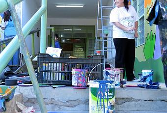 Día atípico para el establecimiento infantil. Dos artistas le cambiaron la cara, en defensa del derecho de los niños.