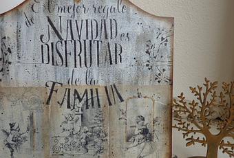 El soporte de madera utilizado es de 30 x 30 cm, para que la plantilla que mide 30 cm de alto, quepa bien.Aún así al estarcir las frases yo las fuí uniendo, dejando menos espacio entre ellas.Anda que no es bonito el papel de arroz ¡ Estaba deseando utilizarlo dónde fuera¡