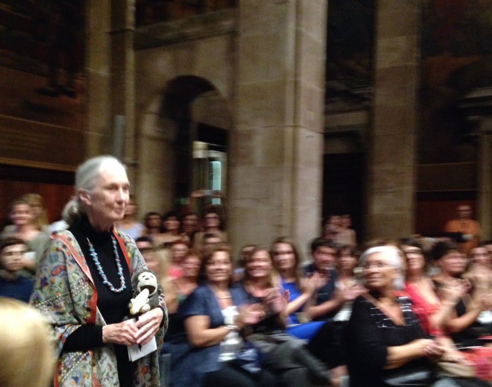 " data-orig-size="800,533" aperture="aperture" />Durante la premiación de la Generalitat, la Dra. Goodall dijo que lo que realmente nos diferencia de los animales es el carácter intelectual de nuestra inteligencia (¿cómo es posible que el ser con mayor intelecto del mundo esté destruyendo su único hábitar? se preguntaba). Y este intelecto, entre otras cosas, nos ha permitido desarrollar formas de comunicación más complejas que otros seres vivos, y nos ha dado la capacidad de explicar a través de la palabra aquello que no está aquí, de educar, de planear un futuro. Para mi alegría, también habló de la People’s Climate March -a la que ella asistió en Nueva York- y de la increíble cantidad de gente que reunió gracias a la tecnología. Ese enorme poder de las redes sociales, que debemos utilizar con sabiduría y que usamos como trinchera tantas veces.