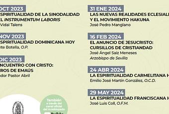 «Sinodalidad y experiencias espirituales» es el lema del ciclo formativo que organiza este curso 2023-2024 el Secretariado Diocesano de Espiritualidad del Arzobispado de Valencia. Este miércoles 24 de abril a las 18:30h., , el P. Emilio José Martínez González, OCD ofrecerá una conferencia sobre “La Espiritualidad carmelitana hoy”. Se puede asistir a ella o seguirla online, a través del canal de YouTube del Arzobispado, en directo o en diferido.