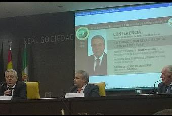 El Presidente da Câmara Municipal de Elvas, Nuno Mocinha, explicó (con su perfecto castellano) en el salón de actos de la Real Sociedad Económica de Amigos del País de Badajoz su concepción y gestiones sobre la Eurociudad Elvas-Badajoz, en la noche del 28 de enero pasado. Fue presentado por el Alcalde de Badajoz, Francisco Javier Fragoso, previa intervención del Presidente de la Real Sociedad, Francisco Pedraja.Un acto de gran interés, seguido de un amplio coloquio que dejó clara la voluntad del trabajo en común para conseguir una actuación de futuro potente en lo cultural, social, económico, infraestructural, turístico, etc., que supondrá una oportuna oferta unida, extensible en el futuro a Campo Maior, y abierta a la colaboración con el entorno.Trabajo el de la Eurociudad que debe envolver -como remarcaron ambos Presidentes/Alcaldes- no solo a los políticos sino a toda la sociedad civil, cada uno en su campo de actuación. ¡Falta hace, para desenvolver esta zona transfronteriza, tantas veces olvidada por los gobiernos centrales de ambos países! Precisamente remarcaría que la actuación conjunta de ambos municipios ya está dando frutos en todos los sentidos, pues ante las administraciones estatales y europeas el "ir de la mano" refuerza sus proyectos y son escuchados con muchísima más disposición que en caso de hacerlo por separado.Precisamente en Eurociudades hispano-portuguesas transcurrieron nuestras dos últimas Jornadas de Fortificaciones Abaluartadas de la Raya (en la formada por Castro Marim-Ayamonte en 2014 y en Chaves-Verín en 2015: la primera en el sur y la segunda en el norte luso-español).Y es que esto constituye uno de los más potentes atractivos artísticos, históricos, culturales y turísticos de esta Raia/Raya, llamada a ser, por estas fortificaciones de la Edad Moderna, Patrimonio conjunto de la Humanidad. Precisamente Elvas ya lo es por sus fortificaciones y Badajoz está llamada a ser una “Extensión” (como oficialmente puede reconocer la UNESCO) de la misma, si se consigue actuar con acierto en la recuperación de las suyas (envueltas lamentablemente en desaciertos).Hace unos días insistía precisamente en estas cuestiones en este blog. Ver enlace: http://moisescayetanorosado.blogspot.com.es/2016/01/en-el-centro-delos-tesoros-de-la-raya.htmlForça a todos e para a frente!Moisés Cayetano Rosado