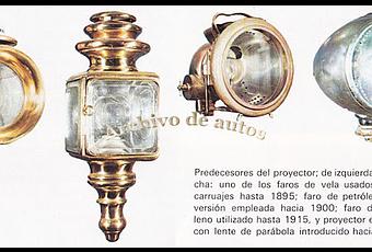 Las fotografías, como los dibujos, los tomé de la Enciclopedia Salvat del Automóvil. La idea de esta nota fue hacer un resumen de cómo evolucionaron los faros delanteros de los autos desde su inicio hasta la década del setenta del siglo pasado.