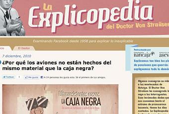 En Bancaja están tan seguros de que explican muy bien sus planes de pensiones, que querremos que nos expliquen todo lo demás. De este concepto nace la Explicopedia del Doctor Van Straüsen. Se trata un lugar donde todo aquél que quiera puede dejar su duda existencial y este irónico doctor le dará su "peculiar" explicación del fenómeno. ¿Por qué los aviones no están hechos con el material de las cajas negras? ¿Por qué lavamos las toallas si cuando las usamos estamos limpios? o ¿Por qué si la lana encoge cuando se moja, las ovejas no encogen al llover? son algunas de las preguntas que ya ha contestado. Os invito a pasaros por su fanpage o su blog, echarle un vistazo y proponer aquella pregunta que os quita el sueño. Seguro que la respuesta es divertida.