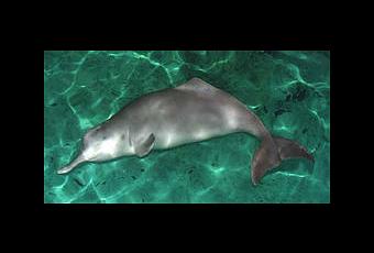 El cuerpo del Baiji es robusto y del tamaño aproximado de un hombre adulto. Tiene los ojos pequeños (al igual que otros delfines de río) y el hocico largo y estrecho. Su color es gris azulado en el dorso y blanco grisáceo en el vientre. La aleta dorsal es triangular y baja y las aletas pectorales son anchas y redondeadas.