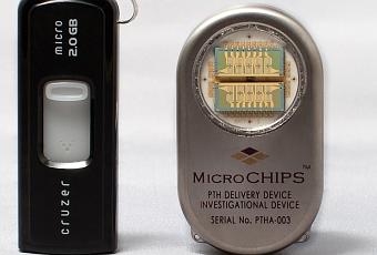 Durante 2011, ocho mujeres danesas llevaron este microchip implantado bajo la piel, a la altura de cintura. El dispositivo, que se controla de forma remota, esta formado por celdas en las que los fabricantes habian metido dosis de teriparatida, un farmaco para tratar la osteoporosis que se debe inyectar cada dia. En concreto, habia un microchip con 20 celdas, cinco con 19 y uno con 17. "Los medicamentos estan en distintos huecos. Cada uno de estos huecos esta cubierto por una capa nano-fina de oro que protege al farmaco durante años si es necesario y evita que sea liberado", explica Robert Langer, Catedratico en el MIT y uno de los firmantes del estudio publicado en 'Science Translational Medicine'. En total, "habia 132 dosis del farmaco y todas ellas se liberaron con exito durante el ensayo", señala Robert Farra, Presidente de MicroCHIPS y responsable del trabajo.
