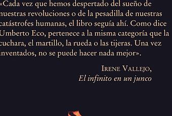 Hay muchas maneras de animar a leer, pero ya no es únicamente la importancia de la lectura. Es el hecho mismo del libro. El libro como caricia. El libro como abrigo. El libro como oración. El libro como consuelo. El libro como refugio. El libro como delirio. El libro como madre. El libro como sexo. El libro como droga. El libro como fuego. El libro como bálsamo. El libro como paraíso. El libro como hijo. El libro como Dios. El libro como espejo. El libro como sueño. El libro como hambre. El libro como sed. El libro como alimento. El libro como agua. El libro como temblor. El libro como descanso. No podría uno terminar de inventariar lo que hay dentro de un libro. Está el infinito. Está el amor. Está la vida. Está la muerte. Está el abrazo. Está la salvación. Está la inteligencia. Está la belleza. No hay otro objeto en el mundo que contenga el mundo entero en su interior. Hoy hemos festejado que exista. No debería haber ni un solo día en que no celebremos su presencia. Lo dice Irene Vallejo en su espléndido libro. No hay instrumento mejor hecho. Es una extensión de nuestro cuerpo, escribió Borges. Es el más asombroso. Es una prolongación de la memoria y de la imaginación. Después de la facultad del habla, la de escribir es la más noble. Después de la facultad de escuchar, la de leer se antoja la más digna. Las religiones se han cimentado alrededor de la aureola mágica de los libros. No sabemos si esos libros sagrados fueron una emanación de la divinidad o son trasunto humano, evidencia de nuestra fragilidad y de nuestro deseo de perdurar y que no todo finalice cuando irrumpe la muerte. La felicidad es un libro.
