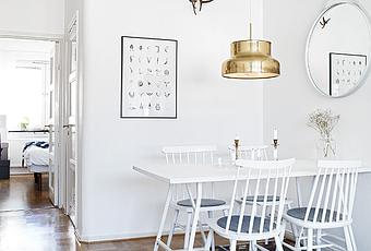 Hoy os traigo una zona de comedor delicada, sencilla y serena, donde un toque dorado le aporta protagonismo.