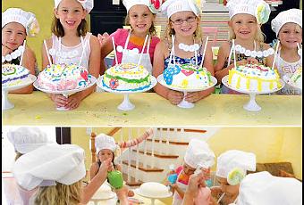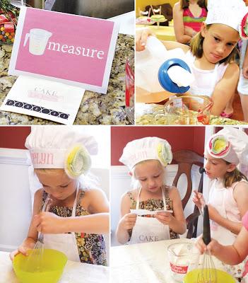 A cada niña se le dio un delantal, gorro y una pequeña bolsita para decorar su propia tarta.