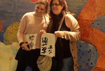También hemos tenido nuestros nombres en caligrafía japonesa, escritos y adaptados por los alumnos de sexto curso de la Escuela Japonesa de Barcelona. ¡Qué bonito, lo colgaré en mi estudio!