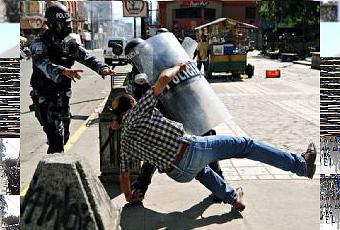 (Tegucigalpa, 29/11/09; 16:00 hs) Cerca de mil personas se concentraron en el parque central de la capital industrial del país, San Pedro Sula, cuando fueron reprimidos con gases lacrimógenos, balas de goma y camiones hidrantes. En esta situación, un periodista colombiano de la agencia Reuters sufrió una herida en su cabeza y al menos dos miembros de la resistencia fueron detenidos. La prensa local reporta decenas de heridos, mientras la división especial COBRAS rodeaba la Radio Uno que transmitía los acontecimientos. Al cabo de unos minutos, Radio Globo que estaba en comunicación con los colegas de San Pedro Sula, sufrieron interferencias y su transmisión fue interrumpida.
