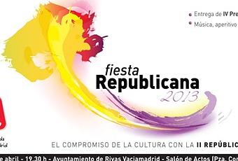 Por ello, como todos los años, Izquierda Unida de Rivas Vaciamadrid organiza la Fiesta Republicana, que se celebrará el sábado 13 de mayo a las 19.00 horas en el salón de actos del Ayuntamiento de Rivas en la Plaza de la Constitución, 1.