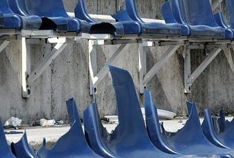 Una imagen de los asientos rotos en el estadio de Bydgoszczy, Polonia, un día después de la victoria del Legia Varsovia ante Lech Poznan para ganar la Copa de Polonia. Efectivos de la policía polaca chocaron con varios de los hinchas del Legia Varsovia que invadieron el campo de juego y cuasaron daños al estadio.