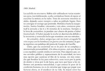 El relato de ficción arranca en 1989 cuando el exinspector Santos Senabre escucha en la radio que durante las obras de rehabilitación para construir la sede del Banco Santander en el Paseo de la Castellana de Madrid, aparecen unos restos mortales. Se trata de una antigua sala de fiestas (Alazán), cerrada por un incendio en 1976 y reabierta como club de alterne un año más tarde. Inicialmente, los datos que escucha son escasos y bastante confusos, pero el expolicía conoce con certeza la identidad del cadáver.Años antes, harto del acoso de sus superiores, Santos decide abandonar el Cuerpo Nacional de Policía, donde llegó a ser jefe del Grupo Antiatracos. Desde entonces (1984) trabaja como jefe de seguridad en la lujosa joyería Grassy, en la madrileña Gran Vía.Tiempo atrás (desde 1978) se había dedicado en cuerpo y alma a investigar la extraña desaparición de Rubí, trabajadora de Alazán. Llega a la conclusión, aunque no lo puede probar, de que ha sido don Álvaro, el dueño del club, el que la hizo desaparecer para evitar que contara todo lo que sabe de sus oscuros negocios.Don Álvaro se había desplazado a Amberes (1977) para conseguir piedras preciosas falsas con el fin de hacerlas pasar por auténticas sin grandes dificultades. Para sus propósitos se asocia con Gaston Vanhülle, mercader de diamantes y mafioso. De Amberes, don Álvaro se trajo como guardaespaldas a Erik Janssens, un ex presidiario y matón a sueldo del mejor postor. En realidad, se lo impuso Vanhülle como condición para montar el negocio en Madrid.Inicialmente don Álvaro quiso embaucar a Santiago Salgado, un prestigioso joyero que se negó a certificar el fraude. Su hija, Adela Salgado, gemóloga, sospecha que la posterior muerte de su padre no fue por causas naturales y pide ayuda a Santos Senabre. Con lo que no contaba Santos era con enamorarse perdidamente de Adela, emparejada a su vez con Diego Montoya, bailarín de cierto prestigio.Adela se siente amenazada y le pide a Santos que la proteja porque Diego, como es habitual, está fuera de viaje. Los “malos” atacan a Santos mientras hace deporte por el Retiro y, cuando entran en su casa para buscar una piedra muy especial, se encuentran con Adela y también le dan una paliza de muerte. Aunque malheridos y con graves lesiones, ambos consiguen salvarse.