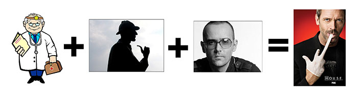 Tenemos un médico, papel que casi nunca falta en ninguna obra, le sumamos la capacidad deductiva de Sherlock Holmes y añadimos la iniciativa investigadora de un policía. Un carácter antipático de ñapa y una adicción a la Vicodina... ¡voilà!... el Dr. House. La antítesis de lo que podría esperarse de un médico. Éxito asegurado.El segundo ejemplo es el excéntrico Jack Sparrow, de Piratas del Caribe.