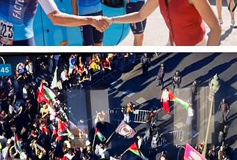 En medio de esa jornada histórica, Isabel Díaz Ayuso fue vista en el coche del director de carrera, posando sonriente con el equipo Israel Premier-Tech. El gesto quedará grabado: mientras su pueblo denunciaba el genocidio, ella sonreía al verdugo.