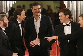 Javier Pérez de Albéniz, en Vanityfair, escribe el artículo “Salvar los medios de comunicación”, en el que recuerda cómo el diario El País abría su portada del pasado domingo con los resultados de una encuesta encargada a Metroscopia en la que los resultados curiosamente coincidían con las dos ideas que llevan semanas vendiendo a sus lectores: lo mejor para España es un Gobierno del PSOE con Ciudadanos y el PP. Lo peor, cualquier cosa que tenga que ver con Podemos.“Los lectores premian el intento de Sánchez, que abre una distancia de tres puntos sobre Podemos”, subtitularon los chicos de Cebrián solo unos días después de que la encuesta del CIS anunciase que Podemos ya superaba en intención de voto al PSOE. “Pero la encuesta ha quedado vieja”, corrió a advertir Rafa de Miguel, corresponsal político de El País. “Por si quedaba alguna duda –advierte Pérez de Albéniz–, pusieron en portada una foto que hablaba por sí misma: explicaba de manera meridiana cómo están las cosas en este momento en nuestro país: Pablo Iglesias, Pedro Sánchez y Albert Rivera en la 30ª edición de los Premios Goya…“En la imagen se puede ver cómo Rivera, el conciliador político de centro, sonríe radiante mientras tiende su mano abierta a Sánchez e Iglesias. El socialista también muestra las mejores piezas de su dentadura, buen rollo, mientras que un Iglesias encogido y con cara de culo parece no tener brazos: se niega a dar la mano. ¿No le queda suficientemente claro, querido lector? Una señora que se ha colado en la foto señala a Iglesias con el dedo, descaradamente, como diciendo: “Mirad, mirad a ese del chaqué, mueve menos la manos que el cuervo de José Luis Moreno… No quiere pactar, no quiere que España tenga Gobierno, solo quiere el caos. ¡Será chavista independentista leninista”.“La imagen que publica El País en portada ha sido editada. Manipulada, si usted prefiere. Para darle fuerza a la idea de que Rivera es generoso, y ofrece su mano, mientras Iglesias es terco y no mueve un músculo. Vea la fotografía original… En El País han recortado al señor de patillas de la izquierda, que es a quien Rivera tiende la mano. Iglesias no hace un solo movimiento hacia la mano de Rivera sencillamente porque el saludo no es para él. Pero un detalle así no podía estropear una gran portada, una portada con mensaje subliminal. ‘Salvar los medios de comunicación’, titula la economista francesa Julia Cagé su nuevo ensayo, publicado por Anagrama. Un libro cuya propuesta “no sólo consiste en refundar los medios de comunicación, sino también en implementar un nuevo modelo para una democracia y economía en crisis”. Una refundación que se me antoja absolutamente imprescindible si queremos tener una democracia verdadera”.