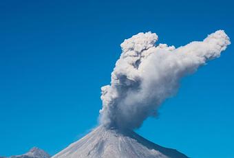 Bueno vamos a ver que nos ha querido decir Hector Guerrero con esta fotografía: El volcán Colima arroja ceniza y humo. Imagen vista desde San Antonio, en Colima (México).