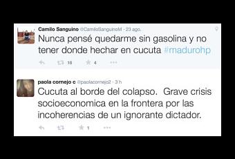 Noticias Caracol reporta que a dos días del cierre de la frontera hay largas colas en las gasolineras cucuteñas y en algunas ya no hay combustible para surtir a la gente. En su cuenta de twitter alguien llamado Camilo Sanguino escribe delirante: “Nunca pensé quedarme sin gasolina y no tener donde hechar (sic) en Cúcuta. #MaduroHDP” Culpemaduro, pues…