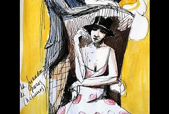 sentada, erguida y bella, con su piel color tabaco, en un sillón de