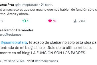 Yo me he enganchado a parasitar ese tuit (es lo que estoy haciendo ahora) para extenderme aquí y de paso para recordar el último artículo de Jaume publicado hasta el momento: "La arquitectura son los padres".