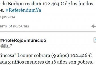 En la red social Twitter se han vertido opiniones al respecto, evidentemente son críticas negativas que expresan el gran malestar que ha provocado esta noticia. Como dice uno de los internautas, la asignación que se le dará a Leonor Borbón Ortiz quizá será legal, pero hoy en día es una indecencia increíble. A esto hay que sumar que el, por ahora Príncipe de España, cuando sea Rey incrementará sus ingresos en un 100%, suficiente dinero para poder mantener a la familia con toda holgura.