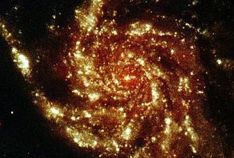 Aunque la Galaxia del Molinete nos resulte más familiar en las longitudes de onda de la luz visible, en esta imagen la podemos contemplar en todo su esplendor en el ultravioleta. Las estrellas jóvenes y masivas emiten una intensa radiación ultravioleta que ilumina los brazos espirales de la galaxia, plagados de cúmulos de formación de estrellas.