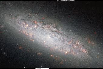 Los recientes procesos de formación estelar dan a la galaxia NGC 6503 con un tono rosa en esta imagen del Hubble. Esta galaxia, una versión más pequeña de la Vía Láctea, se sitúa cerca de un gran vacío en un espacio donde viven pocas galaxias.