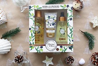 Os recuerdo que el premio es el estuche de regalo que contiene 3 fantásticos productos de la línea “Divine Olive” de JEANNE EN PROVENCE: el Aceite Seco Multi-uso con extracto de higo para la cara, cuerpo y cabello (150 ml), la Crema Hidratante de Manos con extracto de salvia (75 ml) y el Aceite de Ducha Nutritivo con extracto de saponaria y diferentes aceites esenciales como camomila y limón (250 ml).