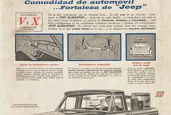 Una vieja publicidad nos trae el recuerdo de la primera versión de la camioneta Jeep Gladiator que se fabricada en la Argentina de la mano de IKA en la provincia de Córdoba. La publicidad apareció publicada en la revista Análisis el 20 de julio de 1964 y que pertenece a mi archivo personal.