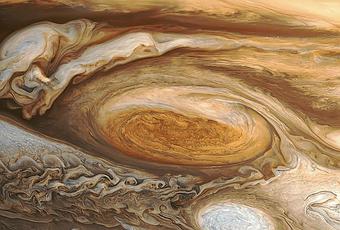 Una bellísima imagen del fenómeno meteorológico joviano llamada Gran Mancha Roja la cual lleva por lo menos 300 años activa, con vientos en su periferia que alcanzan los 400 km/h y con una anchura tan enorme como más de dos veces el diámetro de la Tierra (unos 13.000 km). Clic para ampliar.
