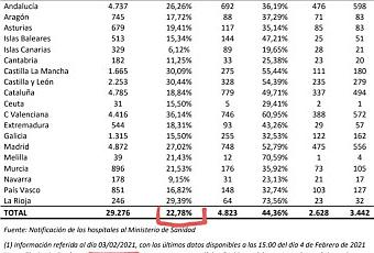 En la tabla siguiente podemos ver los datos emitidos por el Centro de Coordinación de Alertas y Emergencias Sanitarias de España, a fecha 03/02/2021.