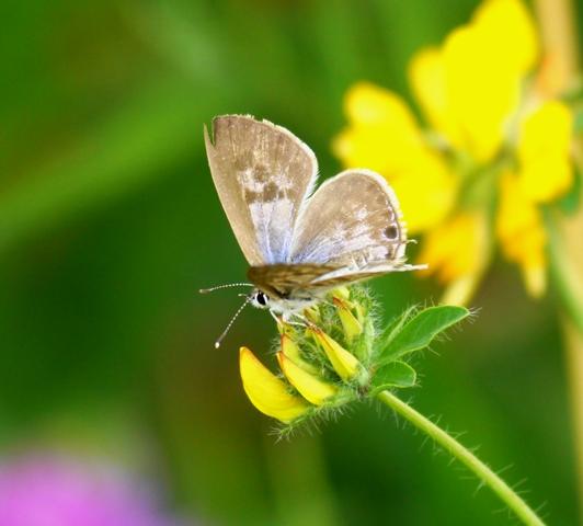 Esta especie es migratoria, sobrevive al invierno en zonas más sureñas y se va desplazando al norte conforme avanza el calor, este año los primeros ejemplares asturianos los observé en junio. Por la misma zona de Peroño pude ver otras mariposas alimentándose, como esta en la que se aprecia otro de sus rasgos típicos, las dos colas del ala inferior.