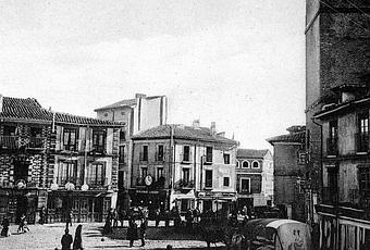 Foto de la plaza del Reloj de Talavera de la Reina a principios del siglo 20. Con un aspecto no muy diferente del que tendría durante el pronunciamiento carlista del siglo XIX