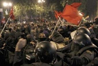 Una cosa no quita a la otra. La actuación policial ayer fue denunciable, abusiva, intolerable. Lo más extraño fue que no vimos ni un contenedor en llamas y en cambio casi 30 detenidos. Por suerte hubo videos de lo sucedido para que todo quedase retratado para la posteridad. Por cierto, en la foto que he puesto en el post, qué coño son esas banderas rojas que aparecen? Encapuchados con banderas desconocidas, que las usan para atacar a la policía y que busca su respuesta para atacar a los manifestantes. O me he vuelto gilipollas o esos son policías infiltrados que buscaron reventar la manifestación como ya pasó en el #15M.